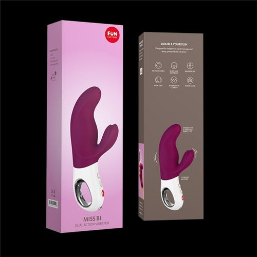 • Miss Bi Vibrator combines phenomenal clitoris stimulation with arousing vibrations directly on your G-spot. The two separately adjustable motors are guaranteed to get you to your climax! After an intensive developmental phase and numerous tests, we created a shape that is both flexible and fine-tuned to please the female anatomy. The curved tip massages the G-spot when fully inserted, while the flexible and wide extension vibrates against your clitoris and labia. The thicker lower end of the toy enriches the experience by providing a pleasant feeling of fullness.