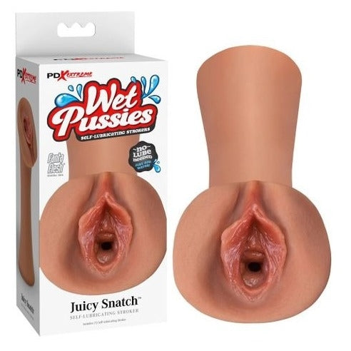 You’ve cum to the right place, because this stroker is dripping wet with excitement! Get ready for an unforgettable stroking session when you stick your dick deep inside the Wet Pussies Juicy Snatch stroker. It’s self-lubricating—which means that all it takes is a little water, and this Juicy Snatch turns into a pleasure zone of slippery orgasmic fun! Made with our award-winning Fanta Flesh® material and designed with super-realistic details, you can be sure that this self-lubricating stroker looks and feels BETTER than the real thing! So stop dreaming about dripping wet pussies, and start creaming in one today!